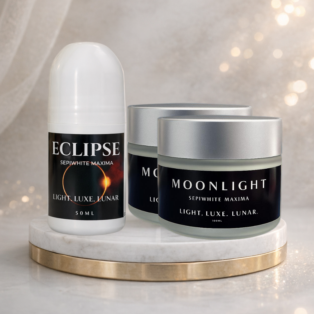 This powerful duo pairs Moonlight - Sepiwhite Maxima for the face and neck with Eclipse - Sepiwhite Maxima Brightening Underarm Roll-On. Together they support a brighter more even looking complexion where it matters most while keeping you dry fresh and confident.
